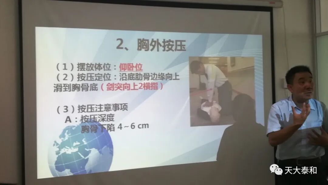 李伟杰老师风趣幽默的语言,加之图文并茂的资料,生动的结合工作特性给大家讲解了人工呼吸、胸外按压、经络穴位养生、职业病的防治、心理健康、雾霾天气的危害及应急急救知识。课程中模拟颈椎按摩示范,大家颈椎互动,现场互动课,大家表示把学到的健康知识运用到生活中。